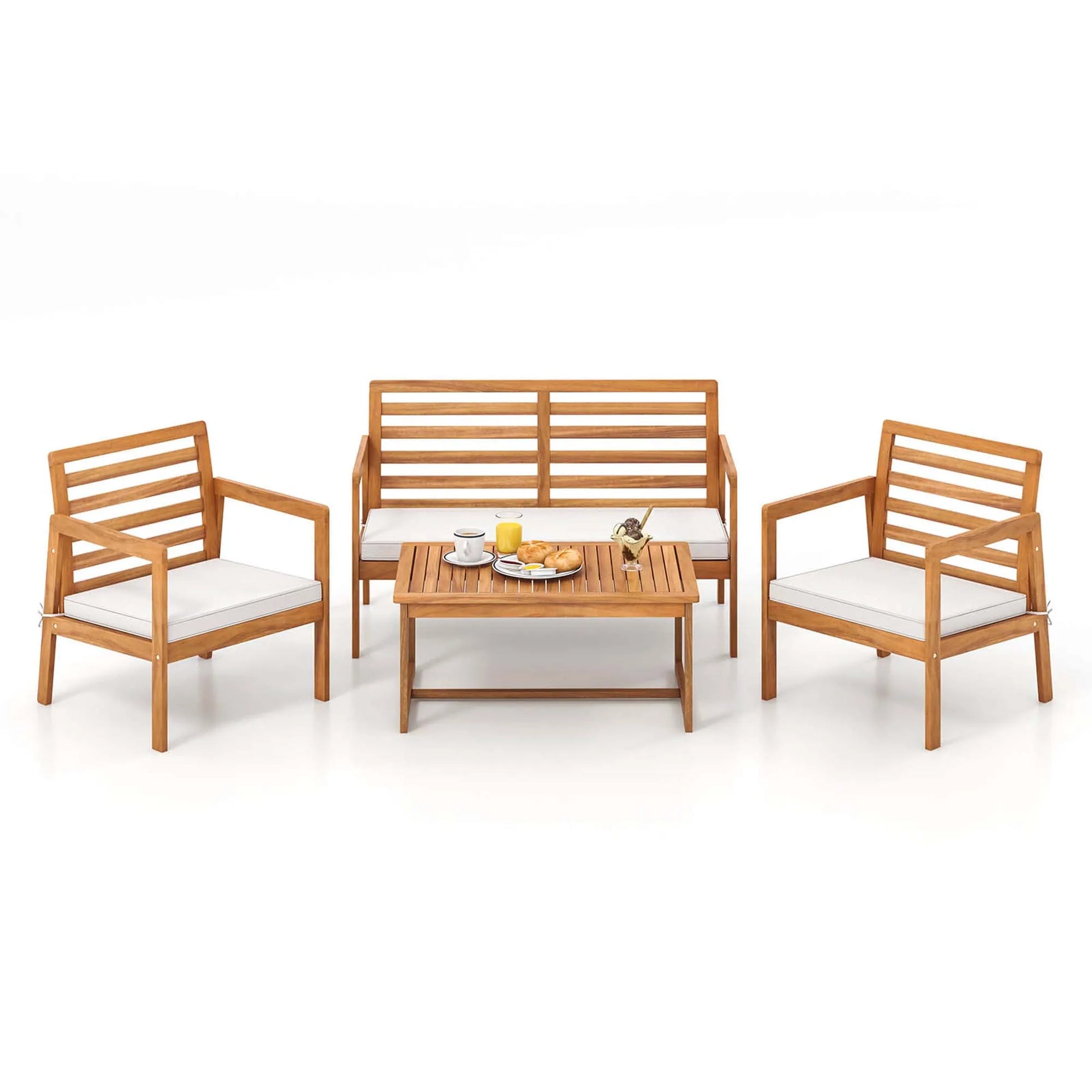 4 PCS Wood Patio Furniture Set with Soft Seat Cushions Solid Acacia Wood Frame