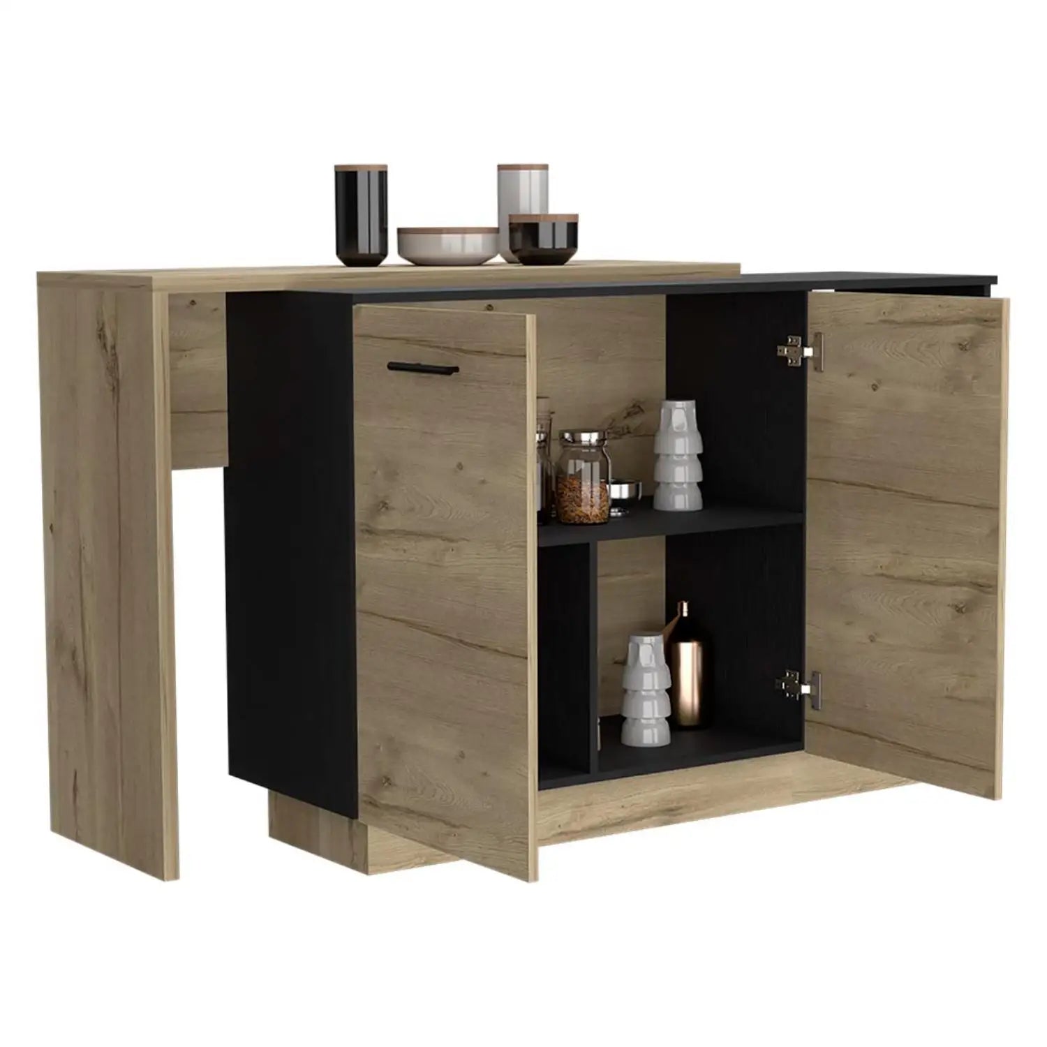 Sicilia Kitchen Island, Two External Shelves, Double Door Cabinets, Three Shelves Black / Light Oak